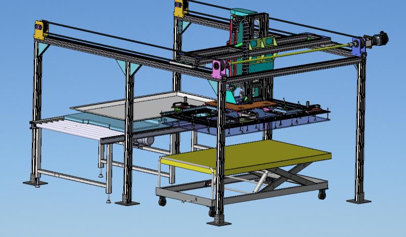 隨著經濟(jì)的發展,人民對美好生活質量的需求不(bú)斷的(de)增強,大屏幕電視機已經陸陸續續走進千家萬戶,因此電視機生產廠家的產能不斷的加大,小屏幕電視機組裝生產線滿足不了大屏幕電視機的組裝要求,采用人工搬屏(píng)安裝到框子上又太費力、需求(qiú)人數多、產能受限、而且容易損壞屏幕,做(zuò)成全自動化的實施技術難度高,一(yī)次性投資金(jīn)額大,又不實用。因(yīn)此集(jí)適自(zì)動化科技針對這一難題,結合多年做非標自(zì)動化設備的經驗,專門開發了(le)一款大屏幕電視機上屏機。