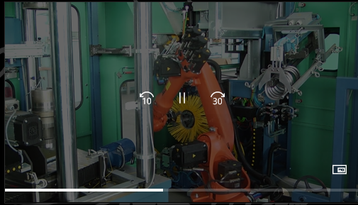 圓環(huán)加工成型後由操作人員分揀到預選(xuǎn)滑(huá)框內,安裝兩個定位銷,通過六軸機器(qì)人將其安裝在布絲及緊固設備上,絲料(liào)(塑(sù)料絲為375mm 至 545mm五種(zhǒng)長度,根據生產需要(yào)分別捆綁在5種不同規格的圓環上,塑料絲直徑(jìng)是 2.0mm~2.8mm,鋼絲直徑為0.8mm,按一定比例混合均布在圓環V型槽內,用ф4mm的鋼絲沿圓(yuán)周方向(xiàng)自動牢牢捆(kǔn)緊(jǐn)捆實。均勻布絲、捆緊鋼絲及送(sòng)絲、切斷、擰緊、均采(cǎi)用(yòng)自動化控製。