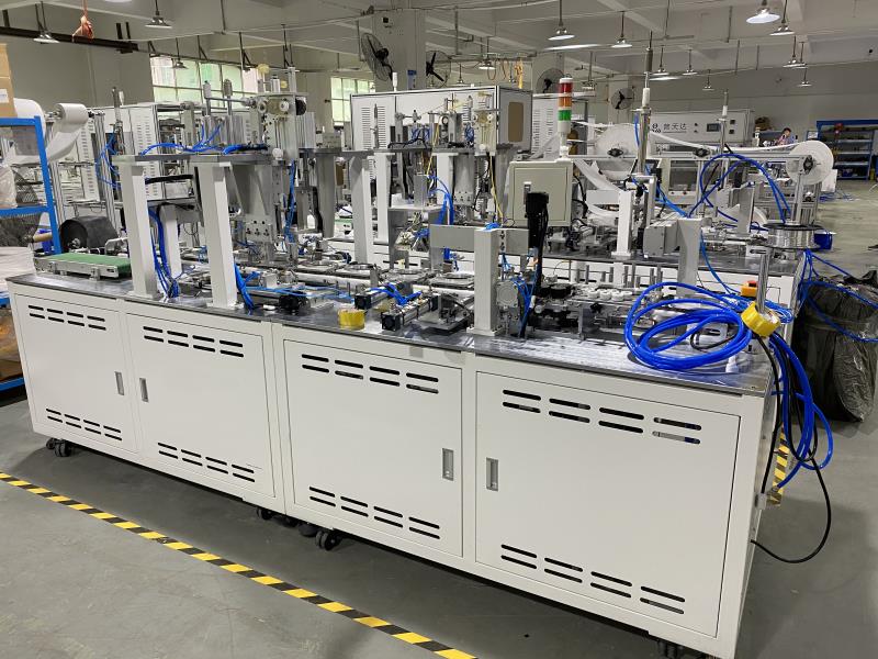 本機自動(dòng)化程度極高,使用超聲波焊接技術和(hé)PLC程(chéng)序結合工作(zuò),僅需一人操作將口(kǒu)罩(zhào)本體放置於模具上,後續工作從鼻梁條焊接、呼吸閥焊(hàn)接、耳帶焊接、logo印刷至(zhì)成品均為設備自動(dòng)完成。